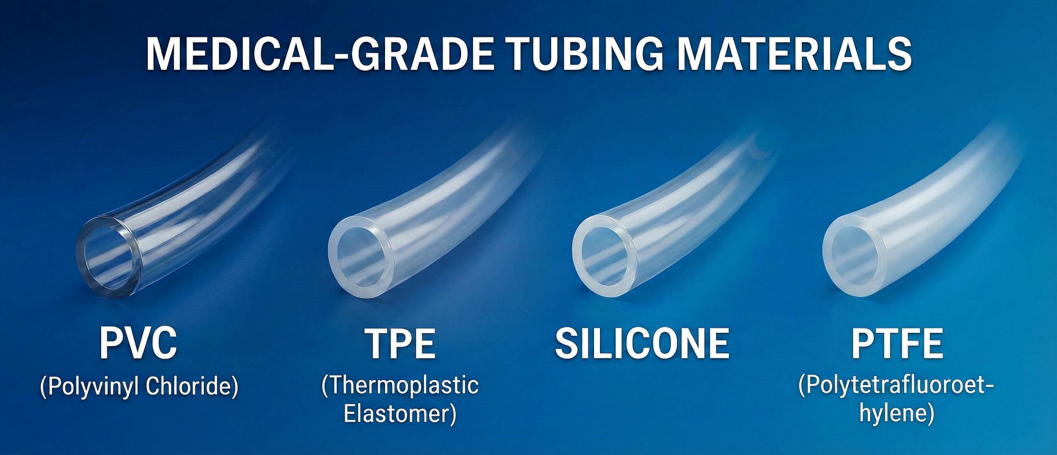 Wide range of medical-grade materials including PVC, PUR, Silicone, TPE, and more. Biocompatible and DEHP-free options.