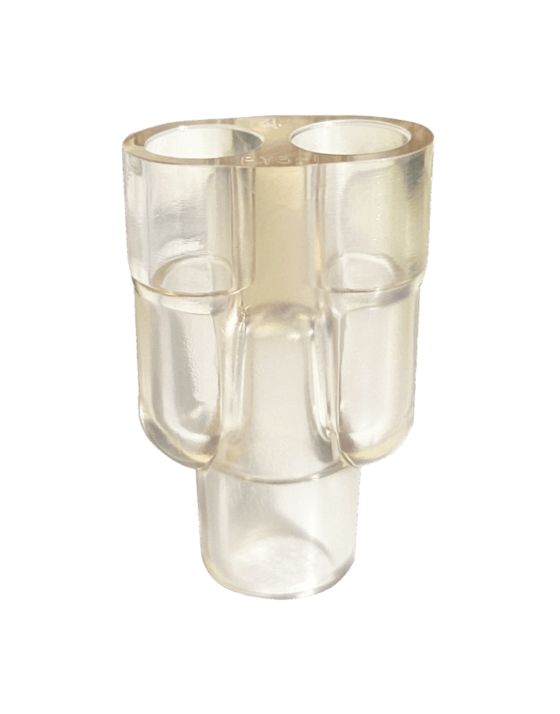 Brevet’s Parallel Y Connector takes a different approach. Instead of merging lines at a steep angle, the two upper ports run side-by-side, parallel, so fluid enters and exits with way less resistance.
